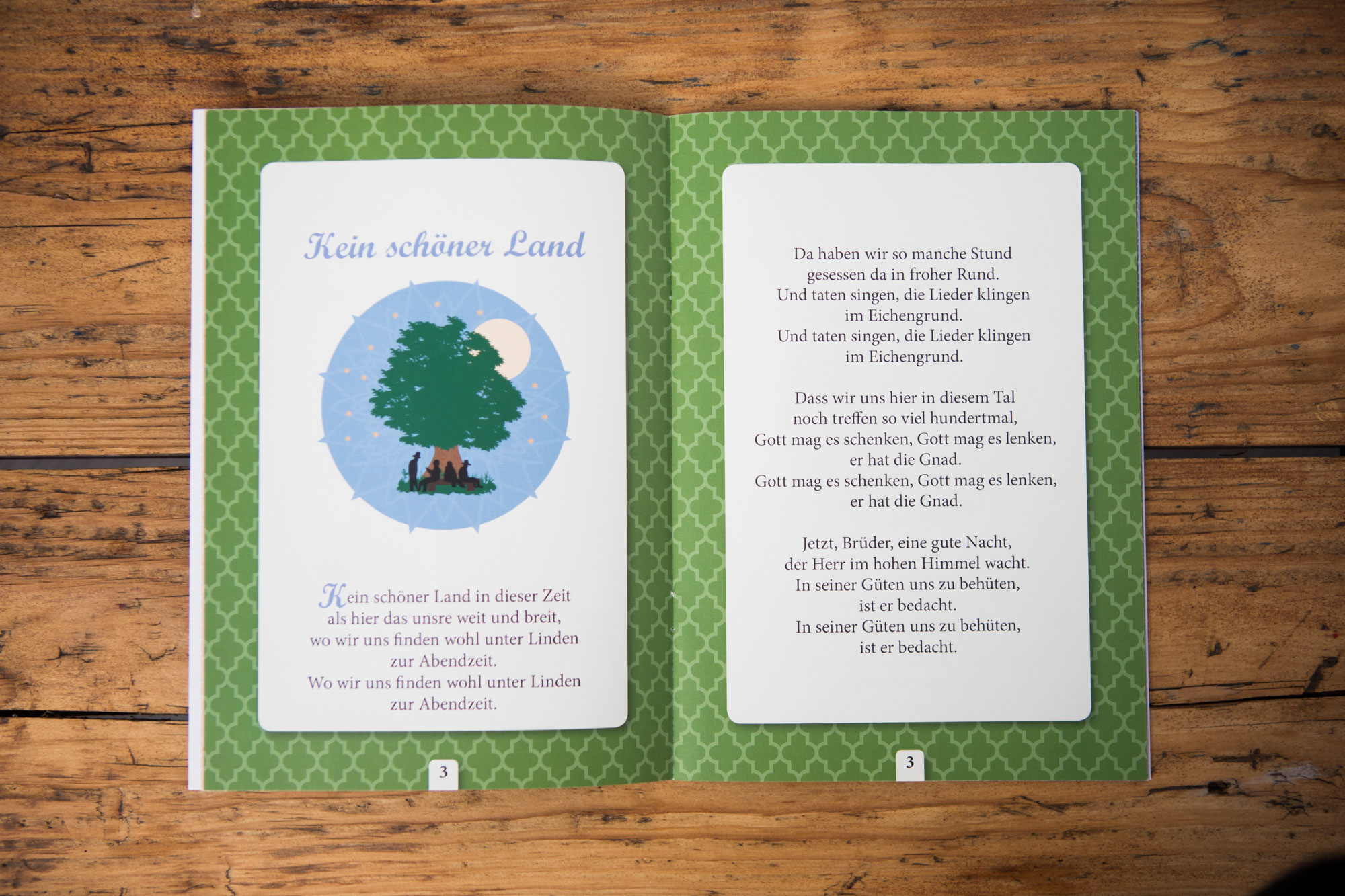 Texthefte mit großem Druck und farbigen Illustrationen, Liederhefte mit Noten und beiliegender CD ermöglichen voraussetzungslos gemeinsames Singen zu jeder Gelegenheit und ohne Vorbereitung.