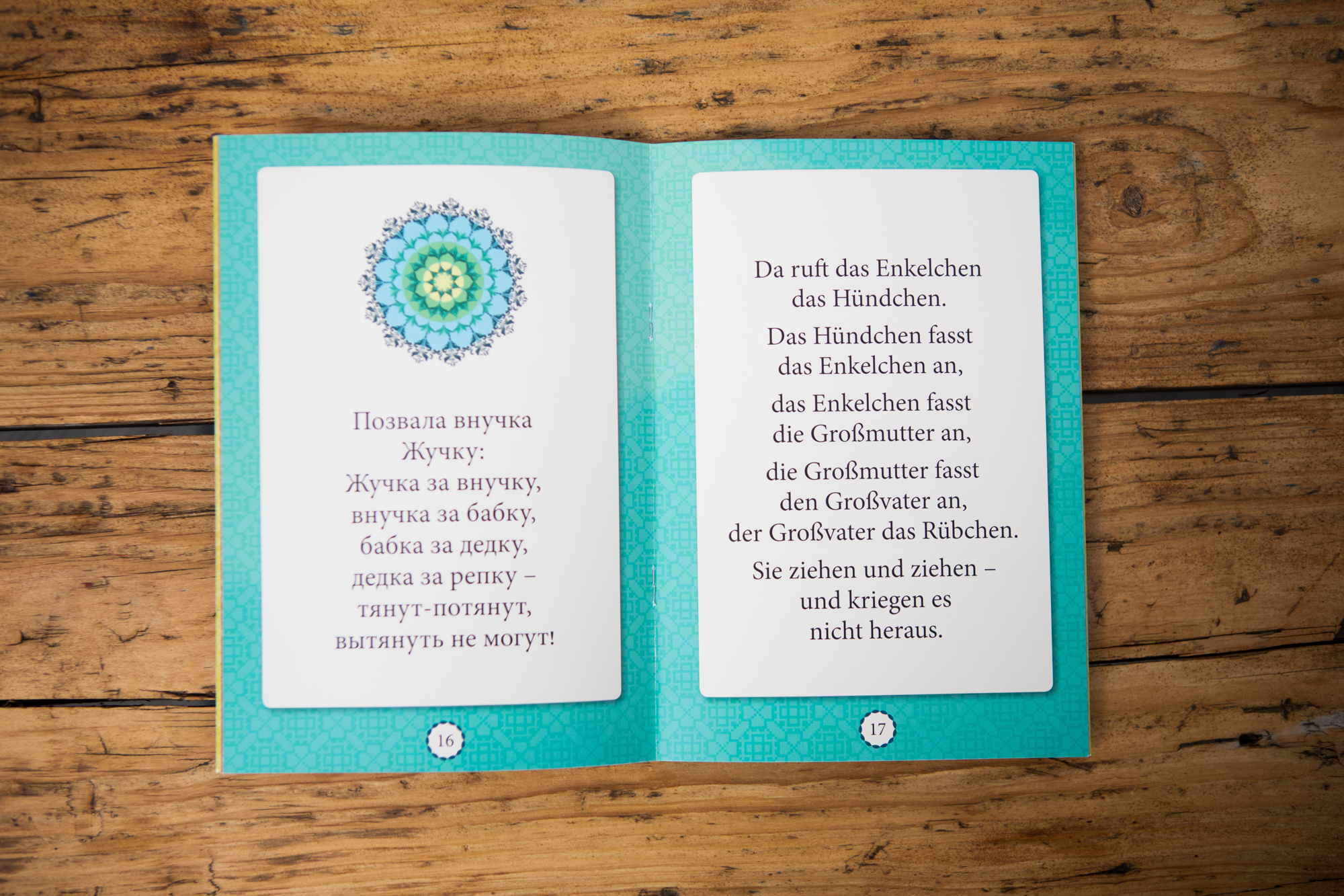 Spezialausgaben wie Textblöcke für große Gruppen, abwaschbare Liederblätter und ein russisch-deutsches Lesebüchlein können direkt bei mir erworben werden. Sprechen